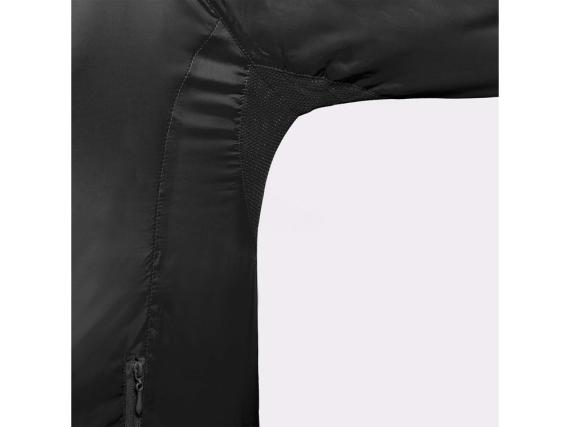 Ветровка из водонепроницаемой ткани на подкладке: *воротник с карманом для капюшоны *рукав реглан *карманы на молнии *центральная молния *карман на спинке для складывания изделия *капюшон с эластическим шнуром и пластиковыми регуляторами *дышащая ткань внутри горловины *дышащая ткань внутри кармана спинки