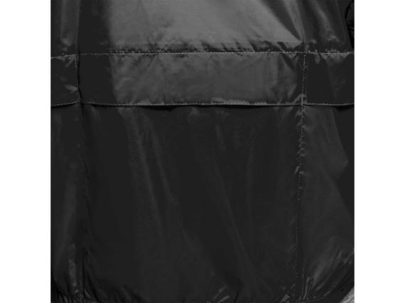 Ветровка из водонепроницаемой ткани на подкладке: *воротник с карманом для капюшоны *рукав реглан *карманы на молнии *центральная молния *карман на спинке для складывания изделия *капюшон с эластическим шнуром и пластиковыми регуляторами *дышащая ткань внутри горловины *дышащая ткань внутри кармана спинки